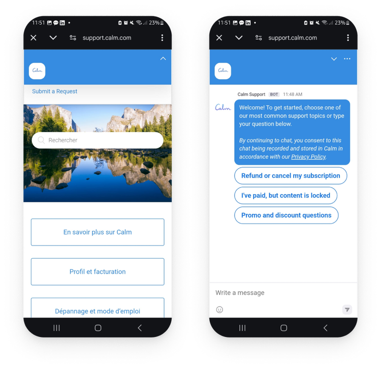 Un support client peu accessible aux francophones (interface et chatbot en anglais